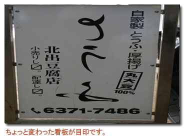 大豆から丁寧に手作業で作られたオリジナルのお豆腐が評判のお店。 「シンプルだけど奥が深いんです」と、ご主人。 自家製の豆乳はすっきり飲みやすく、若い人にもとにかくおすすめ!!